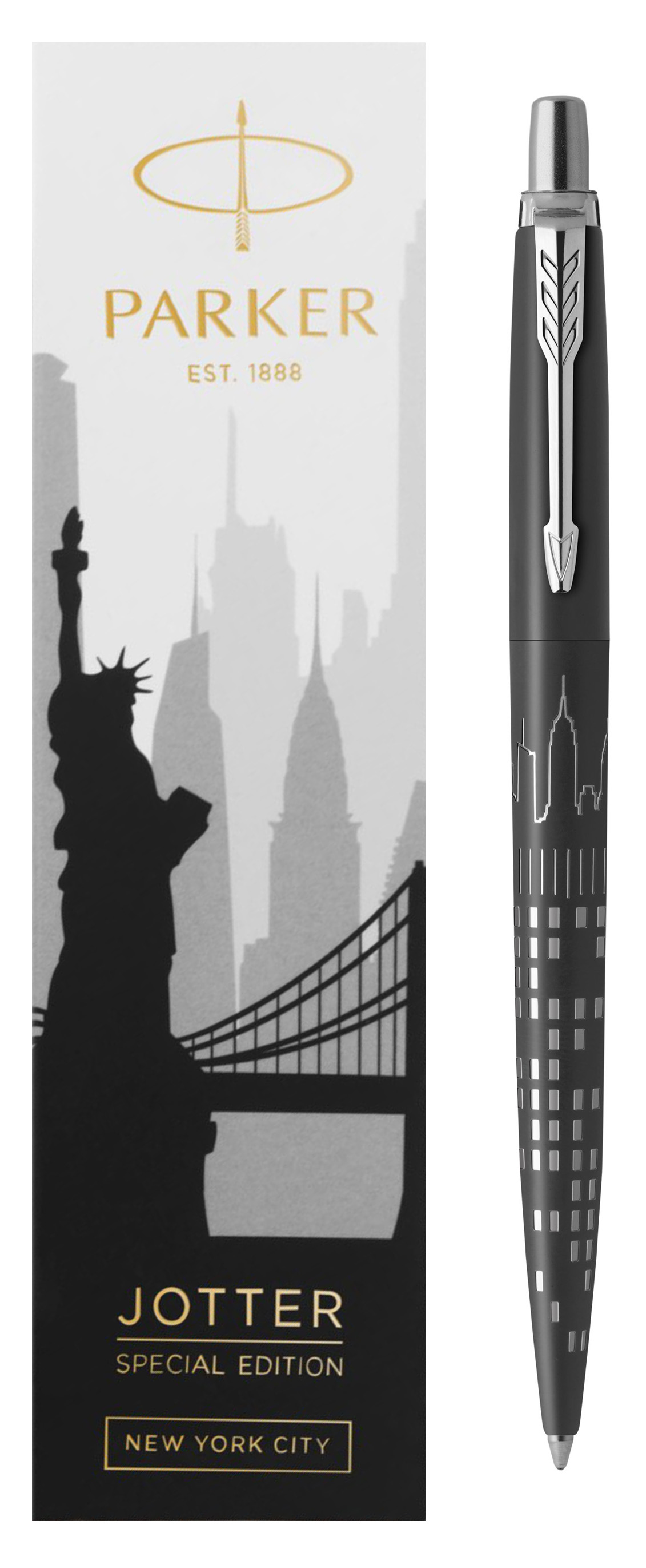 Ручка шариковая Parker Jotter New York Black CT от официального дилера Parker в Красноярске. Вы можете дополнительно заказать гравировку, которая подчеркнет Вашу оригинальность и придаст памятность статусному подарку. Все ручки Паркер поставляются в фирменном футляре.